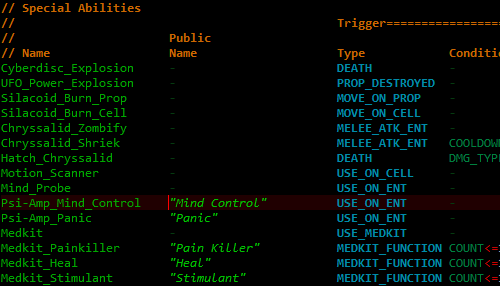 In related news: The Special Ability Framework is COMPLETE! That pretty much explains where I've disappeared to these past weeks, and I'm sure one day it'll have been worth it--because for now it was definitely overkill for implementing just the standard X-COM content, e.g. chryssalids, silacoids, motion scanners, medi-kits, etc., which all could've been hard-coded in no time.