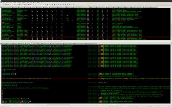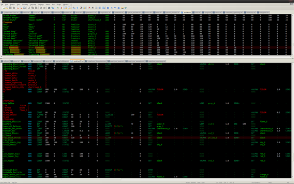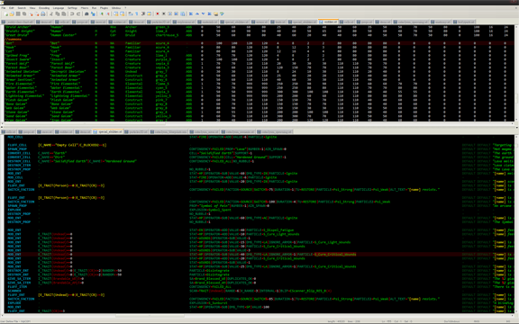 I love working with pretty data, lots and lots of pleasingly-colored data that lines up nicely and makes my eyes happy without killing them after staring at it for hours.* Maybe it's just nerd aesthetics getting the better of me, but seeing the data even from a distance is fun, so I've recreated the effect by taking screenshots during development and shrinking them down here. No need to read the content (which is too blurry, anyway), just enjoy the images. Of course you can always read the content when the mod is released, but that's not the point here (you also may not have as large a screen(s) as I do = less beautiful).