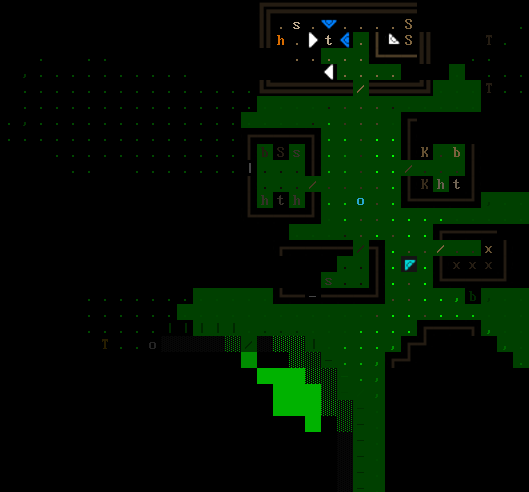 - Spider Nest: There are no obvious ways into the heart of this place, but if you approach the trapped adventurer atop the hill to recover his treasure you may just fall in. Not a good idea unless you're hunting spiders intentionally. Escaping the nest requires either magic (blink/teleport out) or a search of the walls for hidden exits. The longer you stay the more uncomfortable you'll be.