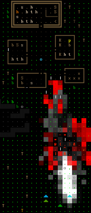 Okay, what really happened is the ASCII mapping code was a bit off and turned the help screen into some alien language. Under the new mapping scheme, a virtually unlimited number of tiny images can be added to the resources and attached to any terrain, unit, etc. This was necessary to make it possible to draw the 2x2 units using special characters. Until now I was relying on hacks to get the unit triangles, but now they and the normal ASCII characters are easy to work with, even from the text files.