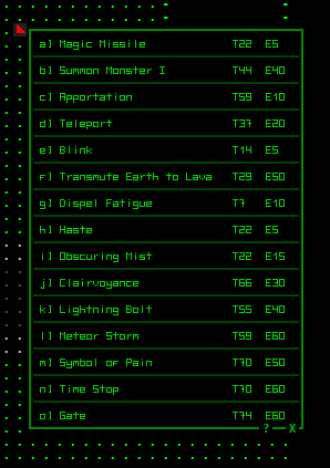 A command list screen did exist before, but it was a temporary solution hacked together for the first release as part of last year's ARRP. Now it's mouse accessible, is properly animated, and has been integrated into the primary UI control system. The inventory and log windows have their own command list, as will all future windows. (For now mouse access for the main command list is through a tiny button found near the bottom-right corner of the HUD, since the that part of the UI has yet to be designed.)